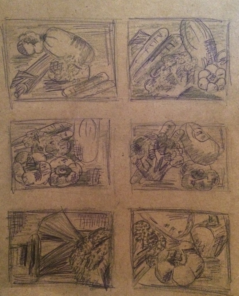 In order to get a clearer idea of the layout I wanted to use, I completed some very quick rough sketches of compositions and viewpoints. This helped me further to see visually how my drawing may look.