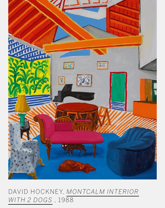 The other piece that I am going to look at is entitled ‘large interior, Los Angeles’ (1988). It is considered the ‘sister’ painting of ‘Montcalm Interior with 2 Dogs’ 1988.