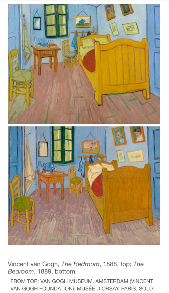The most fascinating thing about these paintings however are the fact that these three separate paintings of his bedroom in Arles France are actually different.